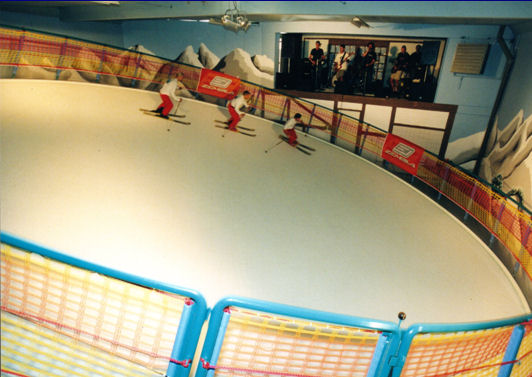 • The giant concave disk moves up and down from side to side for a continuous forward sliding movement in the direction of the lowest point • Available from 12 metres (40 feet) diameter and up with special snow mats and optional adding of real snow or polymer snow • Adjustable speeds • Ideal for learning and training skiing and snowboarding • Also used as exciting tubing and tobogganing attraction • Indoors or outdoors, mobile or fixed installation |