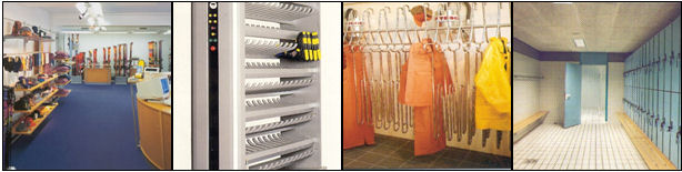 • Shop • Storage • Tuning • Boots and clothing drying • Lockers • Rental hardware |